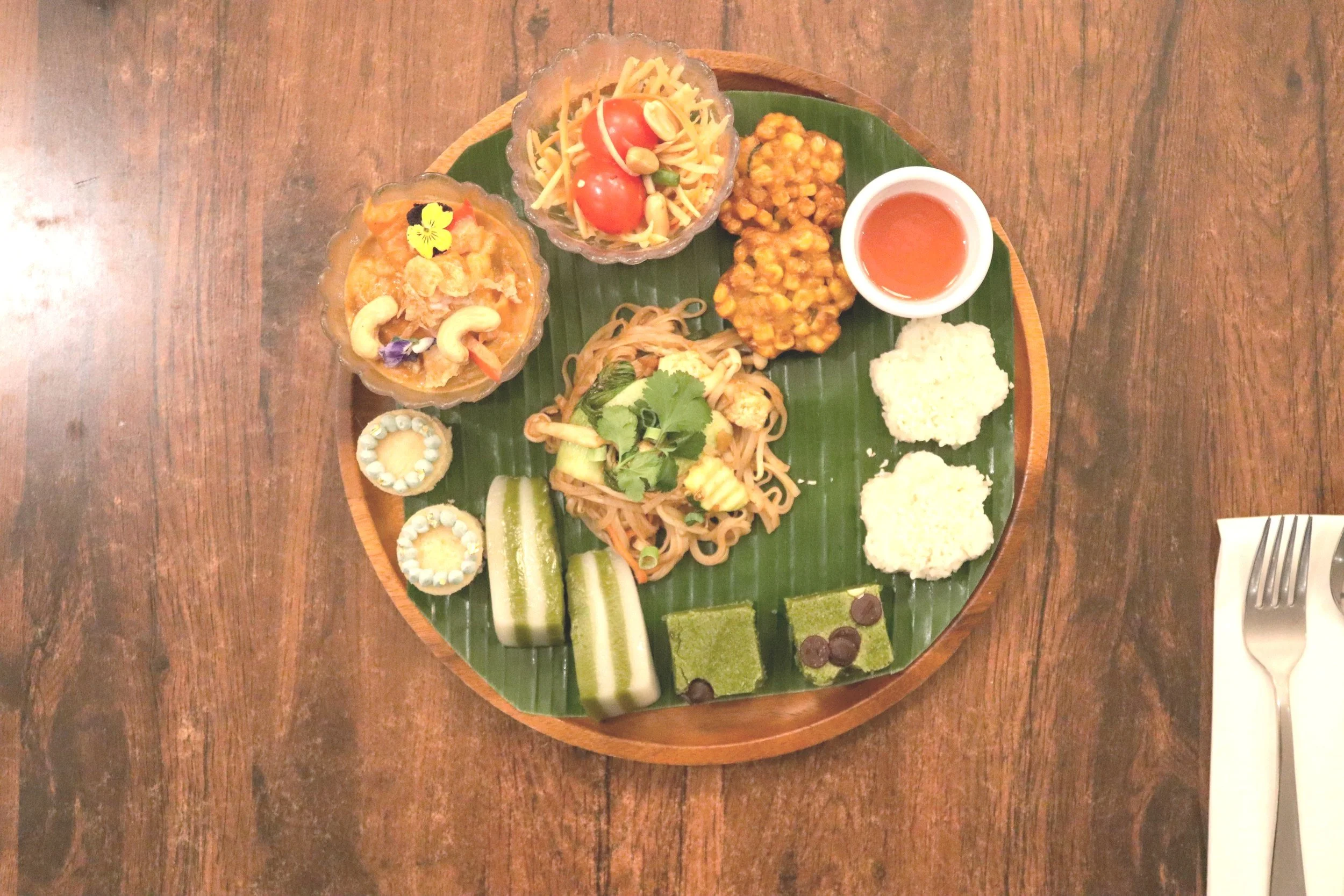 Experience the vibrant flavours of Thailand with our tropical Siam Bloom Afternoon Tea. Indulge in Som Tum Salad, Sweetcorn Cakes, Massaman Curry, Pad Thai Enoki Mushrooms, and Smoked Coconut Rice, paired with sweet treats like Pandan Layer Cake, Matcha Brownie, and Blue Spirulina Sponge Cake.